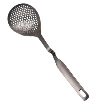 Quasi 餐趣 不鏽鋼鍋邊掛式漏勺 獨特N型彎曲凹槽手柄 可安穩掛於鍋邊 不易滑落 輕盈享用 7.7 x 30cm 1支