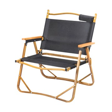 AOTTO 創意傢俱 露營椅 木紋鋁合金支架 600D牛津布 最大承重120kg 黑色 1個