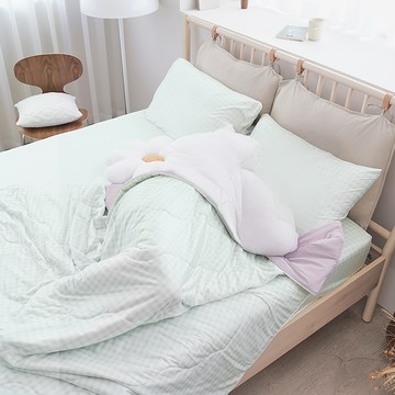 LAZYDAY BEDDING 小日常寢居 激凍冰紗單人床包2件組 針織涼感 綠曳向夏 單人床包 188 x 107cm + 枕套 75 x 45cm 床包 + 枕套組