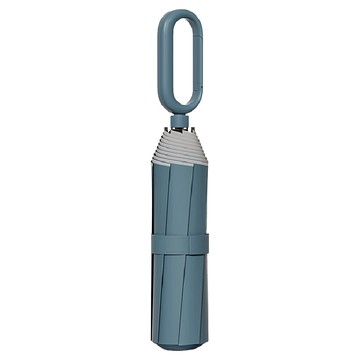 環扣手開三折黑膠傘 防潑水 UPF50+ 安全反光條 霧霾藍