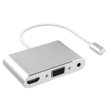 UniSync 蘋果 iPhone/iPad lightning 轉 HDMI/VGA MHL影音轉接器 支持音源輸出 鋁合金外殼 高清1080P 即插即用 1個