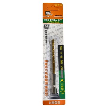 PANRICO 百利世 HSS鑽頭 鍍鈦六角軸鑽頭 4.5mm 耐磨耗 壽命加長 適用於木、鐵、塑膠、PVC板 台灣製造 1個