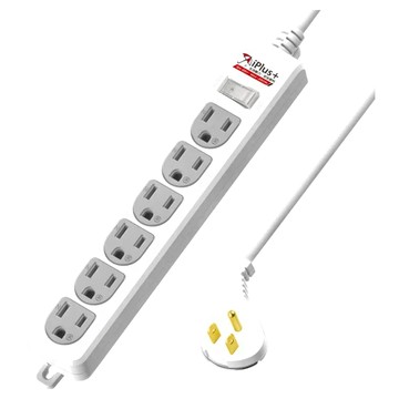 iPlus 保護傘 6孔延長線 6開關6插3孔 4.5m 白色 1條