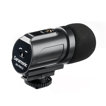 Saramonic 楓笛 SR-PMIC2 立體聲心形電容式麥克風 免電池設計 75Hz 可切換低切濾波器 配備防震底座 黑色