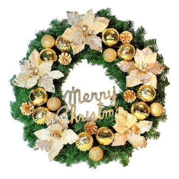 浪漫朵朵 聖誕花豪華聖誕花圈 福臨圈 20吋 香檳雙金系 直徑約50cm 1個