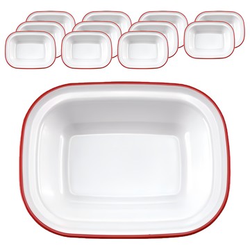 TATUNG 大同磁器 琺瑯 長方深碟 10.5吋 純白色/紅邊 12個