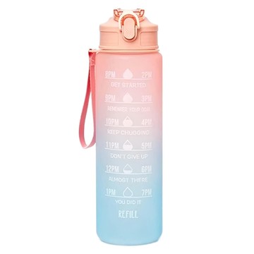 彈蓋吸管刻度運動水壺 直桶款 29 x 7.6cm 粉色 1L 1個