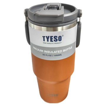 TYESO咖啡杯雙層保溫保冷手提冰霸杯大容量304不銹鋼雙飲車載杯