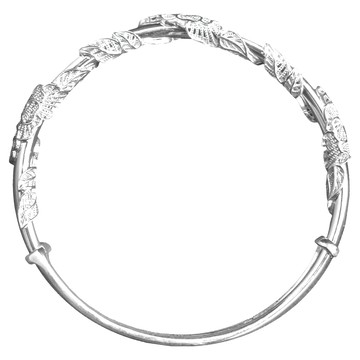 手環 999純銀 可調整式手圍 精緻雕刻 繁花似錦