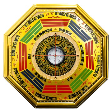 鎮宅避邪羅盤八卦鎮(中)-16cm 合金面板 木款 羅盤八卦 黃色 1個