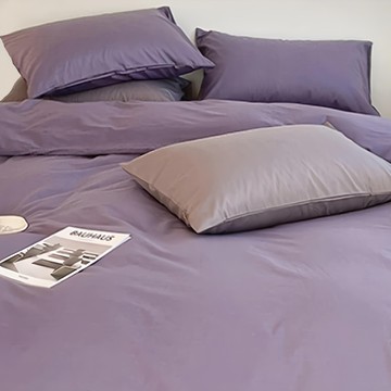 紫紅色麻平床單 /麻床單 / 軟化石洗麻