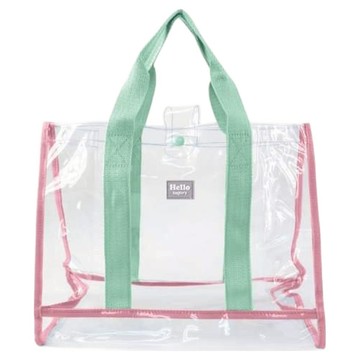 Bagtory HK 百寶袋王 Toteby 透明手挽袋 (容量:14L) 0.3mm 透明環保PVC物料製造 草莓 + 馬卡龍綠 35 x 17 x 26.5cm