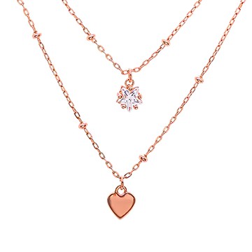 MARIGOLD 美爾朵 傾心的思念 鑲鑽愛心雙層項鍊 925純銀 玫瑰金 鍊長37.5cm + 延長鍊4.3cm
