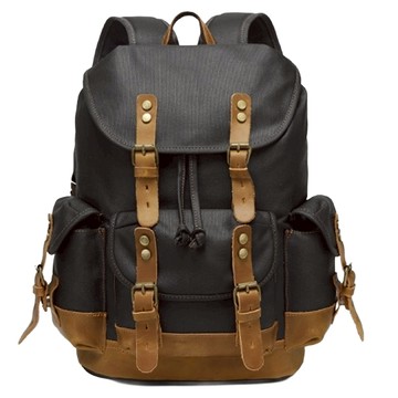 過蠟防潑水帆布男士大容量雙肩包 CLB01 35 x 15 x 45cm 黑色 + 黃棕色 1個