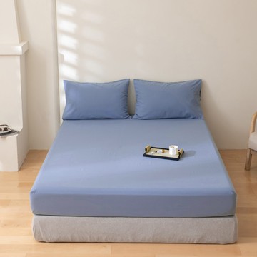 J-bedtime 床寢時光 高質感素色天絲床包枕套組 S7666L-H 沉穩藍 雙人加大 床包 + 枕套2個