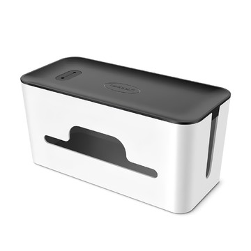 FANCY LIFE 電線收納盒 盒蓋分離設計 頂部充電線出口 白盒灰蓋 2個