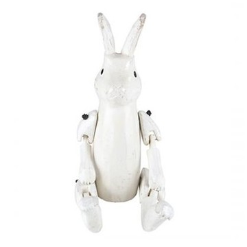 英國復古手工製作 仿舊感木頭雕刻關節可動造型擺飾(白色兔子)