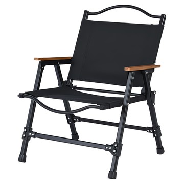 戶外四段式可調節高背大川椅 600D牛津布櫸木扶手 支架鋁合金 約3.7公斤 承重120公斤 摩砂黑 1個