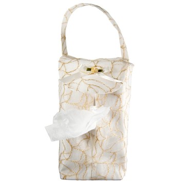 LASSLEY 蕾絲妮 典雅刺繡掛式衛生紙套 掛盒 金色 約17 x 10cm