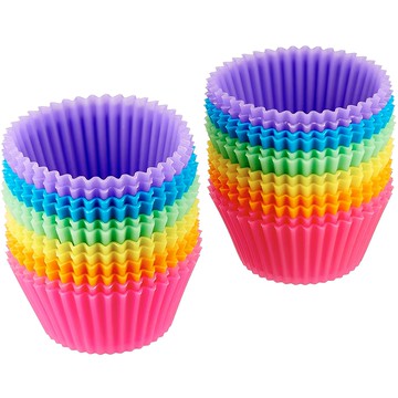 AHOYE 馬芬蛋糕矽膠烤模24件組 顏色隨機 耐高溫無毒 易脫模 可重複使用 1組