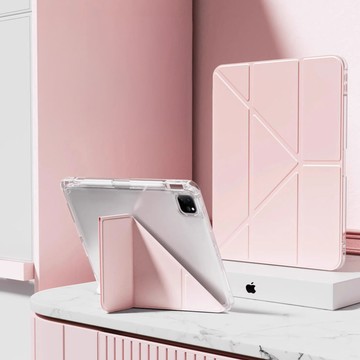 ANTIAN 帶筆槽Y折透明平板皮套 iPad Air 6/Air 5/Air 4 11吋/10.9吋 粉色 1個