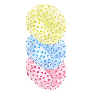 AHOYE 可重複使用圓點浴帽 乾髮帽/護髮帽/洗頭帽 藍色波點 + 紅色波點 + 黃色波點 3個