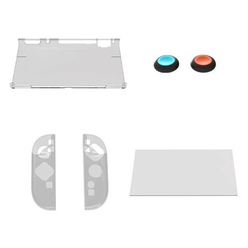 Switch2主機透明水晶殼 + 左右手柄TPU套 + 鋼化玻璃膜搖杆帽保護殼組 1組 單一商品 混和顏色
