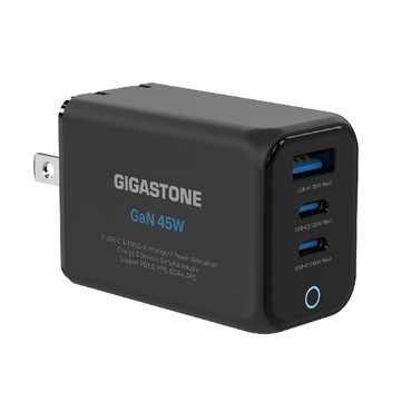 GIGASTONE 立達 45W GaN氮化鎵三孔USB-C快速充電器 PD-7451 黑色 1個