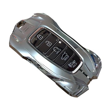 現代汽車 金屬智能鑰匙保護殼 適用於Palisade/Avante/Grandeur 4鍵/5鍵 永恆的銀 H-03