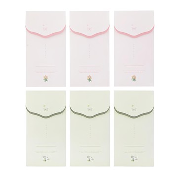 Tamsaa 花紋內附信紙節日感謝祝賀紅包袋 粉色 + 綠色 6入