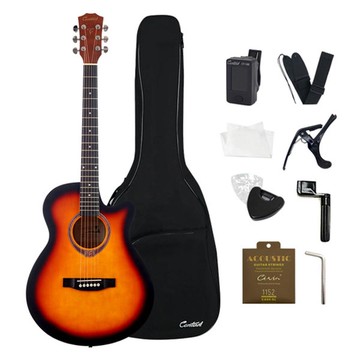 Lanjian系列 38吋,缺角民謠吉他,木吉他,琴袋+背帶+彈片+全配備 (紅棕色)
