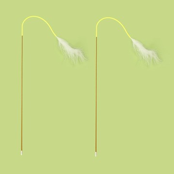 漂浮寵物 貓咪白尾釣竿玩具 黃色 2個