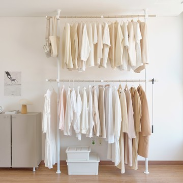 衣架專家 頂天立地掛衣架 2層 管徑38mm 89~137 x 220~260cm 白色 + 原木色