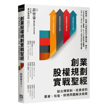 創造公司最大價值,創業者、投資人都該知道的「股權規劃策略」!創業者、投資人別再說你不懂法律、會計!最白話問題解析、台灣真實案例、台灣會計師實戰經驗,不藏私獨家大公開!技術入股、以債作股、勞務入股的「創價策略實戰」!台灣第一本討論股權激勵經典!繞過鑑價報告的增資技術!把債務變成你的公司價值!黃沛聲律師(創投律師Bryan、立勤國際法律事務所主持律師)專文導讀,幫你快速掌握每章節重點!【創業者、會計師、律師聯合推薦】林國全教授 國立政治大學教授謝銘元 ECFIT 雲端 CRM 創辦人黃協興 社團法人臺灣省會計師公會理事長李柏鋒 科技媒體INSIDE主編陳泰明 眾達國際法律事務所資深顧問吳建賢 財富方舟學習平台創辦人艾蜜莉(鄭惠方) 惠譽會計師事務所會計師許坤皇 遠景法律事務所律師李偉俠 《新創募資教戰》作者孫治華 簡報實驗室創辦人林靜如 律師娘什麼人需要這本書?1. 幫創業新手、投資新手徹底搞懂,可以幫公司價值最大化的股權、財務規劃策略2. 解答創業公司、投資老手也不知道的財務問題隱藏解方,在台灣環境下,可以靈活運用的股權策略3. 律師、會計師需要協助創業者、投資人,從本書實戰案例,學會更多股權、募資、估值的規劃策略【本書特色】「覺得股權規劃、會計、法律很難?」不用擔心,本書用故事案例、圖表說明,不是教科書,只講實戰,就是要幫助創業者、投資人看懂。「創業股權策略適合台灣嗎?」本書都以台灣真實的案例做解析,教你如何活用台灣創業法律,規劃創業財務策略。「別的書上沒有的實戰策略、實作流程!」本書作者是長期輔導台灣新創團隊的會計師、法律專家,幫台灣團隊解決過許多創業的股權財務問題。本書是他的獨門方法集結,真實可操作。【書籍簡介】公司的獲利其實是集中各種不同的資源,甚至是特殊的資源來去達成「最大化獲利」目的。利用「股權」這樣子的機制,可以透過分潤,有效的讓投資人「分配未來的獲利」,也可以把「各種資源」丟進來作價。而一個好的商業計畫,其實是集中各種不同的資源,甚至是特殊的資源,去達成獲利目的。問題是,應該怎麼做?對於創業者、投資人,除了看到創業的產品、營收,這本書要幫你從會計師的角度,從作者輔導過的各種台灣創業案例,來一起看到「創造價值(創價)」這件事,也包含整合公司許多不同的資源:透過股權分配、勞務入股、技術增資、無形資產作價,以債作股等等方法,創造出一個更完整的商業模式。而這是創業者、投資者必須知道的。這本書,不只會讓你深入淺出的了解這些為公司「創造價值(創價)」的股權規劃技術。而且符合台灣法律的規範,並且從台灣真實案例的分析,要揭開或許你從來沒有想過的創價策略,幫你撿起公司掉在地上的價值。這樣一本書,是台灣第一本在真實市場經過驗證的實戰專書,絕對是台灣創業者、投資人,甚至輔導台灣創業的會計師、律師,必讀的著作。林國全(國立政治大學教授):「作者將他多年執業心得,透過很多例證說明的論述方式,讓外行人能夠很快理解企業財務相關知識,讓內行人心有戚戚焉。當然是一本值得推薦的好書。」陳泰明(眾達國際法律事務所資深顧問):「作者以深入淺出的筆法向讀者們分享了公司股權投資方方面面的架構,並抽絲剝繭逐一分析其實際的作法,可能有的效應及運用的技術,有相當精彩的描述與評析,讀起來完全無財務投資專業書籍般艱澀難懂,反倒是順暢無比。令人想一口氣消化完畢,從此功力大進!」黃協興(社團法人臺灣省會計師公會理事長、中山聯合會計師事務所所長):「這本專著在解決新經濟時代創新產業的股權持股安排,有很大的幫助,在坊間很少有這樣用深入淺出的方式,介紹新修正公司法有關無面額股、技術及勞務入股的操作方式。很有參考價值,本書是新經濟創業家的良伴,實務工作者的益友。」李柏鋒(INSIDE主編):「身為科技媒體主編,時常接觸新創團隊,看這本書的過程中,許多台灣新創過去的血淚教訓又回到腦海,數度感嘆如果早一點有這本書該多好。也因此特別推薦讀者,只要你會受到「股權規畫」的影響,一定要仔細研讀這本書,先能自保,再能獲得應有的回報!」李偉俠(《新創募資教戰》作者):「新創公司或尋求更大成長的企業,常會面臨不同於傳統企業的問題,包括股權分配、公司結構等。而作者對於幫助有企圖心的公司解決這些架構問題有很大熱誠,因此也累積了許多寶貴的案例經驗。」孫治華(簡報實驗室創辦人):「所有的商業模式都要有財務可行,所有的營運策略也都要可以影響到財務結構。這本書教你新創事業如何運作財務思維。」吳建賢(財富方舟學習平台創辦人):「莊世金會計師是一個能站在中小企業主的角度,協助中小企業主「真正解決問題」的會計師。」謝銘元(ECFIT雲端CRM創辦人):「 台灣創業者應該要知道的財務股權募資實戰指南!」Emily 鄭惠方(惠譽會計師事務所會計師):「本書涵蓋股權設計實務上的重要概念及操作細節,最後並輔以案例說明,值得企業家們珍藏品讀。」許坤皇(遠景法律事務所律師):「書中以深入淺出的筆調,同時從財務、稅務及法律面,以眾多例子詳加分析說明,處處是收穫,不禁終日埋首書中,一口氣讀完。」