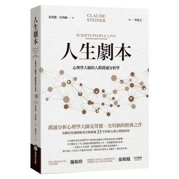 一本「激勵人心、發人深省」的指南,幫助你做出深具成效、獨立自主的選擇,改寫你的人生。「流暢好讀,振奮人心,發人深省。」《洛杉磯時報》(Los Angeles Times)這本書已幫助數百萬人瞭解自己的人生,你也可以改變你自己的人生劇本溝通分析心理學大師克勞德.史坦納的經典之作美國亞馬遜網路書店暢銷逾35年仍踞大眾心理類榜人生劇本指的是我們在年幼時因身邊的人帶來負面或正面影響,不自覺決定了自己要過快樂或絕望的人生,當個贏家或失敗者,一旦做出人生抉擇,我們就會努力實現並度過餘生。書中揭示了決定人生劇本的因素,教你如何改寫人生劇本,過得更幸福。「人生來都是王子與公主,直到父母把他們變成了青蛙。」這是克勞德.史坦納和艾瑞克.伯恩發展溝通分析的根本信念。克勞德.史坦納相信人們先天是健康的,只是在生命的早期階段基於周遭環境的正面或負面影響,發展出一種後天的模式;這些影響主宰了我們生命中的每個細節。因此,孩子們會在無意識的情況下做出決定,不論是快樂或沮喪、贏家或輸家、強者或依賴者、充滿關愛或殘忍惡毒;然後花上畢生時間,讓這些決定成真。對那些選擇活在負面劇本之中的人來說,後果可能會是一場大災難,除非他們能做出有意識的決定去改變一切。結構理論人的行為分成三種自我模式:家長、成人和兒童。一個人任何時刻都會按照其中一種自我狀態運作,藉由觀察和聆聽一個人的外表和自我特色,就能分辨對方處在哪一種自我狀態。例子溝通分析:父母面對吵鬧不休的孩子,父母的內在兒童會說:「安靜!不要吵!」隨著幼兒慢慢發展三種自我狀態,從父母身上見的一切會成為他內心的家長。設下這些禁令的是父母的兒童,而它成為小孩的家長。這道禁令的影響力非常強大,主宰他每一個重大行動。克勞德.史坦納在書中告訴我們,可以經由解析童年所受到的禁令、屬性和抉擇,瞭解這三者如何影響自己愛人、盡情體驗身體以及享受與控制世界的能力,並釋放自己,告別這些壓迫性人生劇本。同時,他也提供我們樂觀建議與實用分析,讓我們得以為自己重寫更有意義的美好人生。