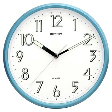 RHYTHM 日本麗聲時計 時尚螢光面板掛鐘 藍色