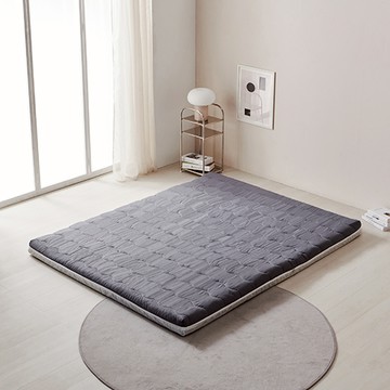 LIV MOM 12區折疊人生床墊 + 絎縫床罩 加大單人床 菱格木炭灰色 7cm