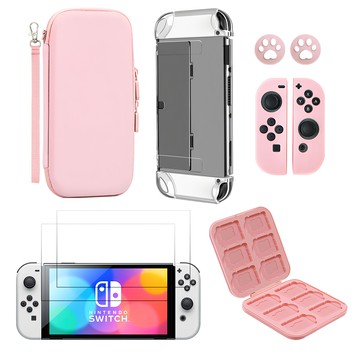 Space Shield 任天堂 Switch OLED 相容 全方位7件組 粉紅色 1套 Space Shield Nintendo Switch OLED 相容多合一版7件組