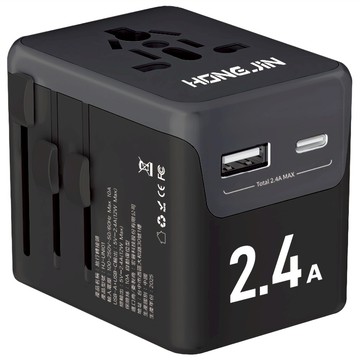 HONG JIN 宏晉 旅行轉接頭 HJ-UNI01 12W 黑色 1個