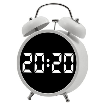 經典大數字時鐘 靜音學習金屬雙響鈴鬧鐘 白色