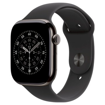 Apple Watch Series 11 (GPS + 行動網路);46 公釐石瓦色鈦金屬錶殼;黑色運動型錶帶 - S/M
