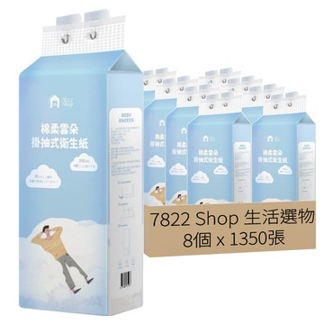 7822 Shop 生活選物 棉柔雲朵掛抽式衛生紙 1350張 8個