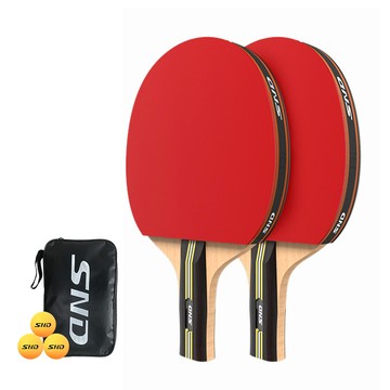 SND 初學者雙拍雙面反膠實木底板乒乓球拍訓練套裝 短柄直拍 2個 附收納包 + 兵乓球 3個 XT-635 1套 26 x 17 x 3cm