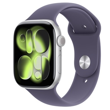Apple Watch Series 11 (GPS);46 公釐銀色鋁金屬錶殼;霧紫色運動型錶帶 - S/M