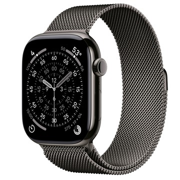 Apple Watch Series 11 (GPS + 行動網路);46 公釐石瓦色鈦金屬錶殼;石瓦色米蘭式錶環 - S/M