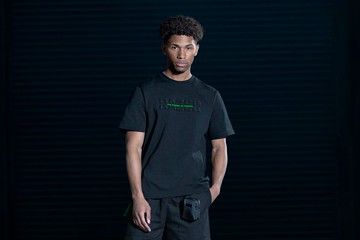 男款黑色概念性印花短袖T恤|8E9FJK3