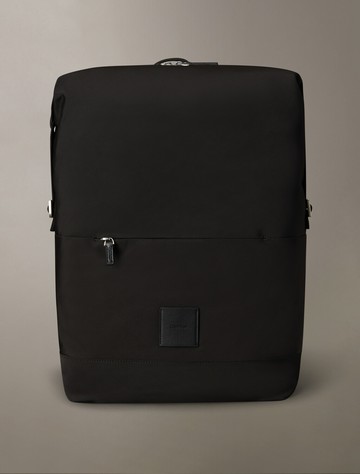 上方開扣橡膠塗層皮革後背包-黑色