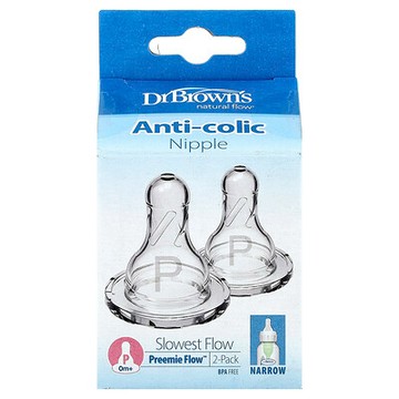 Dr. Brown's, Natural Flow®,Preemie Flow™,防脹氣奶嘴,0 個月以上,極慢流速,2 個