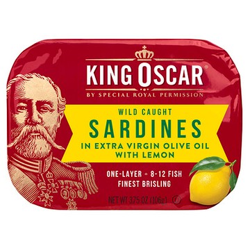 King Oscar, 野生捕撈,沙丁魚,載于高級初榨橄欖油中,含檸檬,3.75 盎司(106 克)