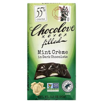 Chocolove, 薄荷奶油夾心黑巧克力,55% 可可,3.2 盎司(90 克)